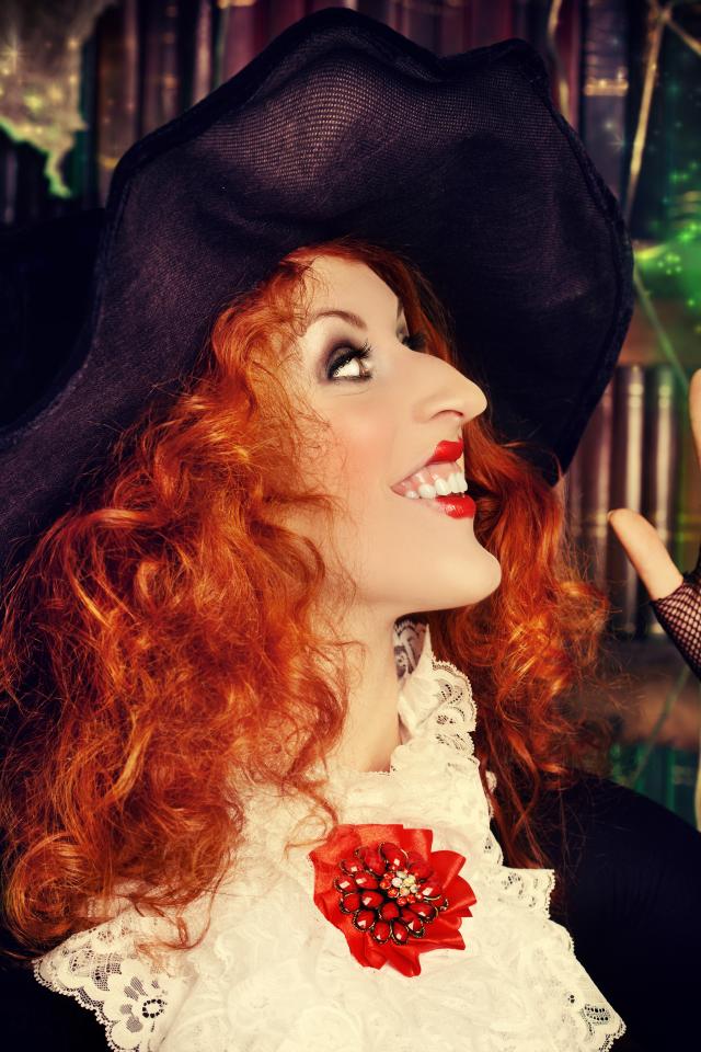 Wallpaper Halloween red-haired girl in a witch costume