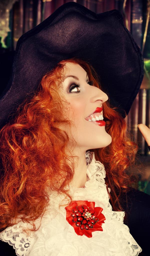 Wallpaper Halloween red-haired girl in a witch costume
