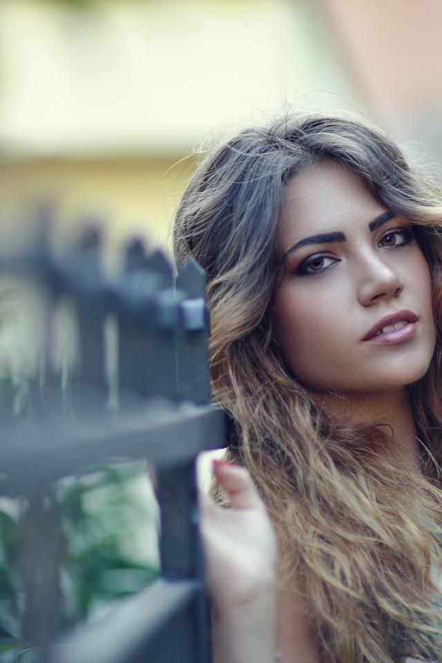 Wallpaper Young girl with long hair stands by the fence