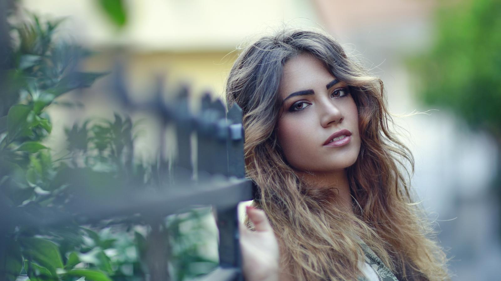 Wallpaper Young girl with long hair stands by the fence