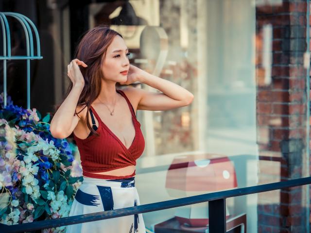 Wallpaper Gentle Asian girl stands on the balcony