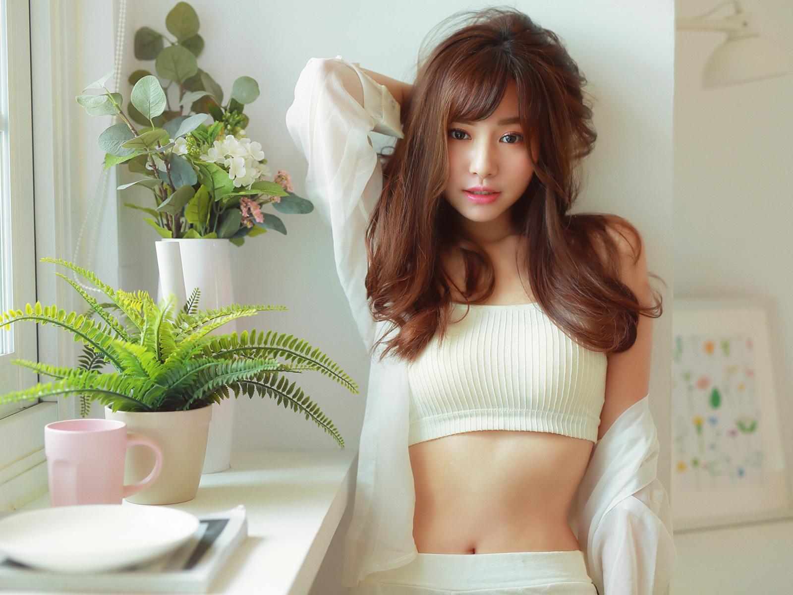 Wallpaper Gentle Asian girl stands at the window