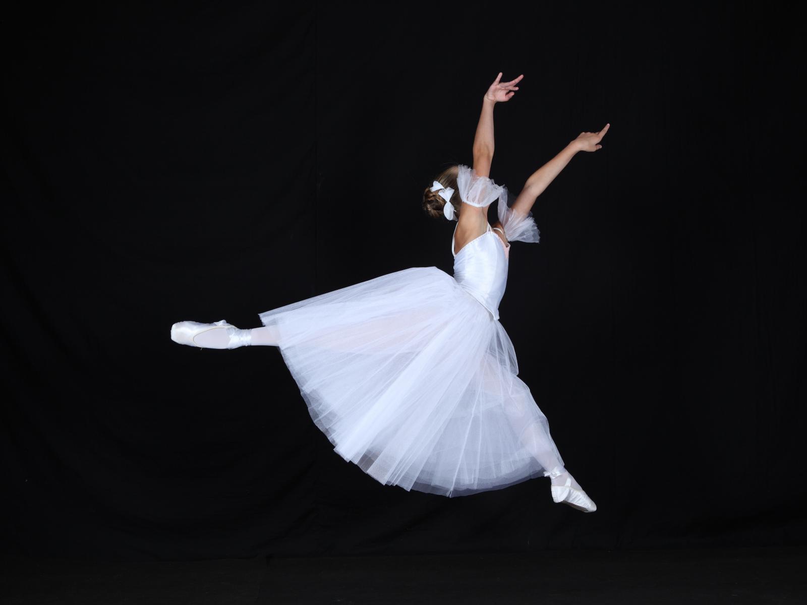 Wallpaper Girl ballerina in a white dress on a black background