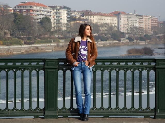 Wallpaper Smiling girl standing on the bridge by the river