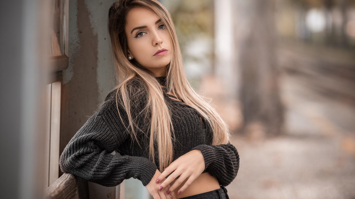 Wallpaper Beautiful blonde in a knitted sweater near the wall