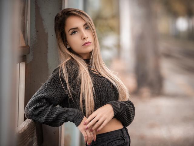 Wallpaper Beautiful blonde in a knitted sweater near the wall
