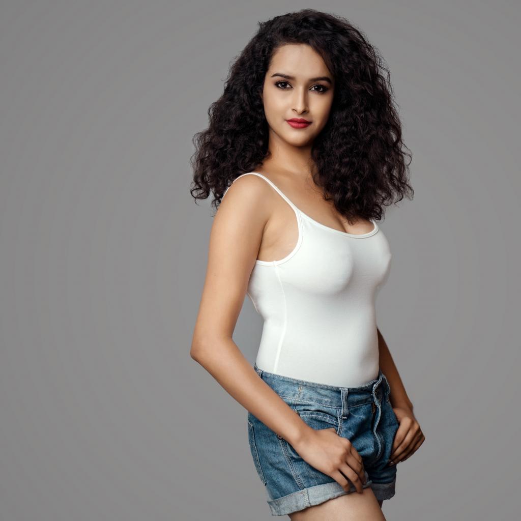 Wallpaper Young girl in shorts and white T-shirt