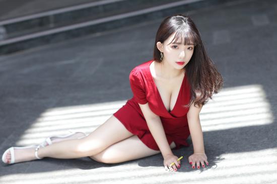 Wallpaper Beautiful girl in a red dress on the ground