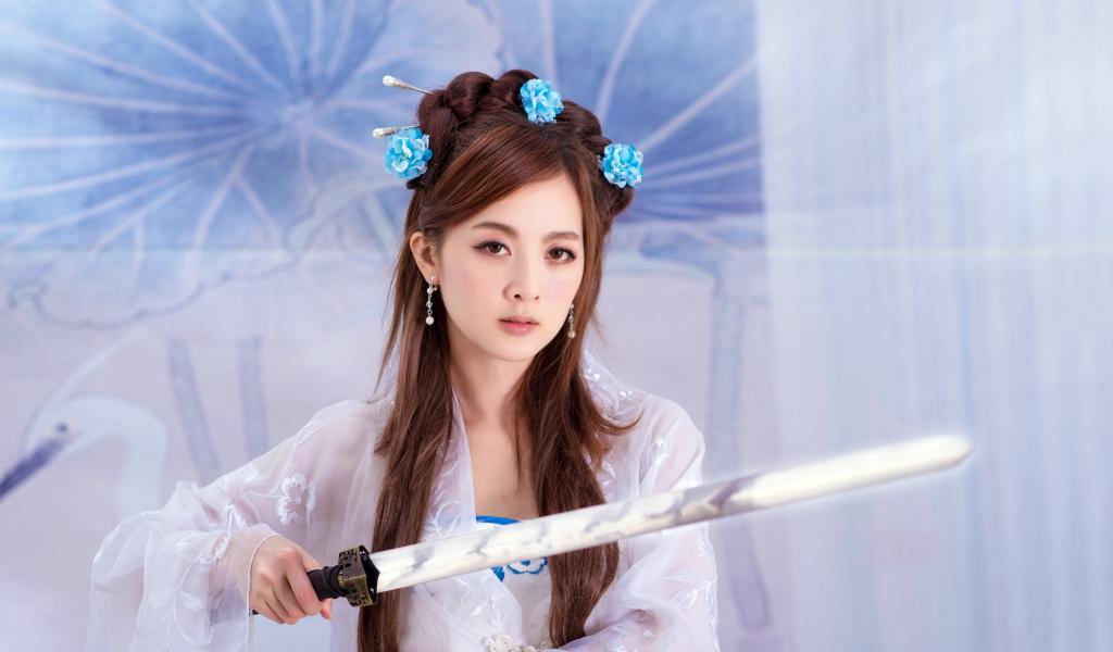 Wallpaper Young Asian girl with a sword in her hands