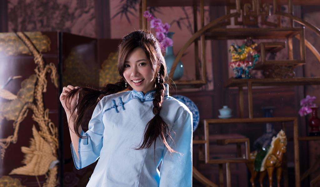 Wallpaper Beautiful smiling asian girl with braids on her head