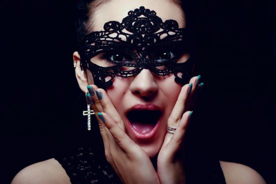 Wallpaper Beautiful tender long-haired girl with black mask on her face