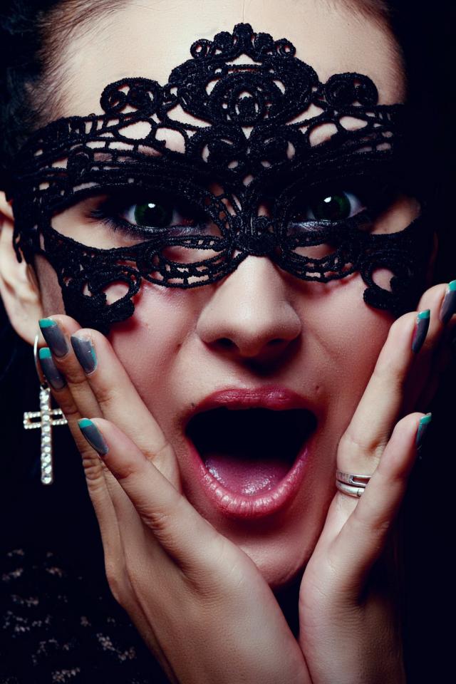 Wallpaper Beautiful tender long-haired girl with black mask on her face