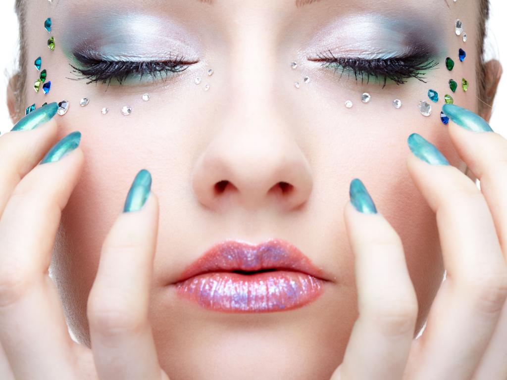 Wallpaper Girl with bright makeup and rhinestones on her face