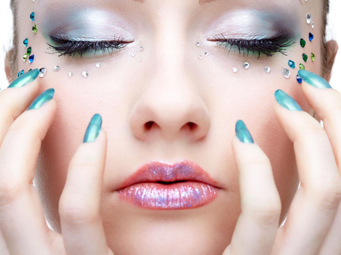 Wallpaper Girl with bright makeup and rhinestones on her face