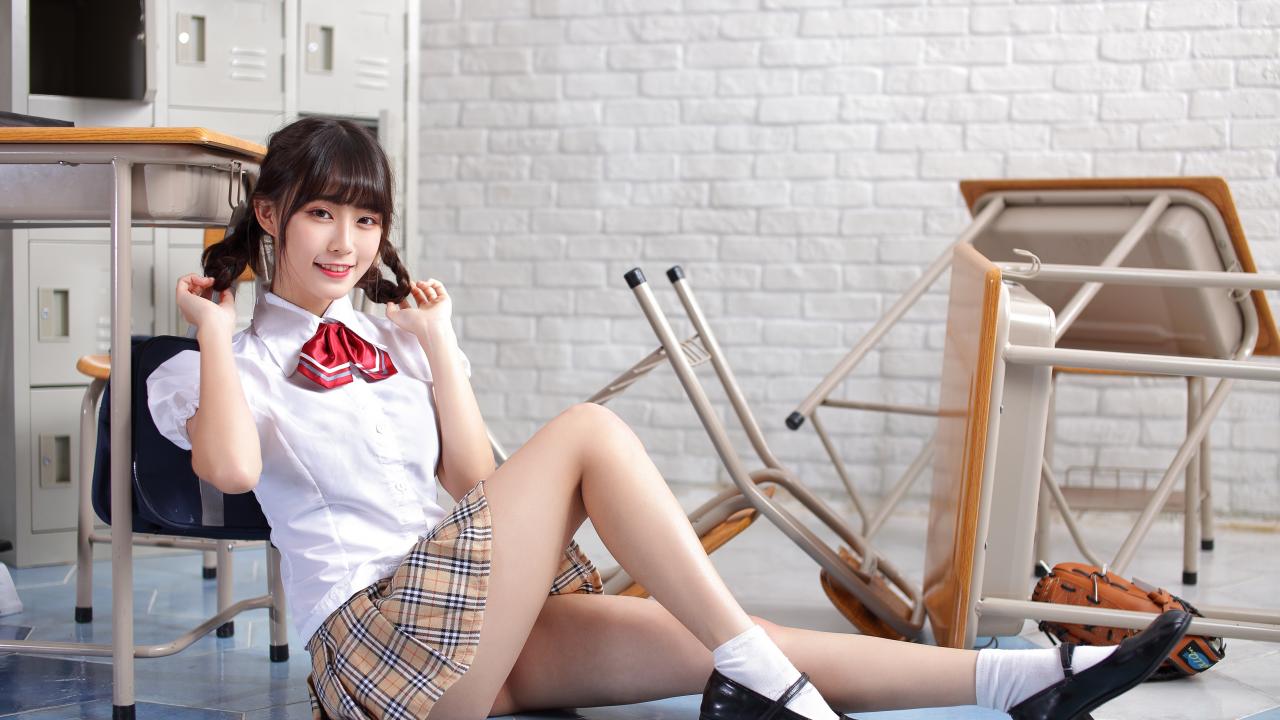 Wallpaper Asian girl in school uniform in class