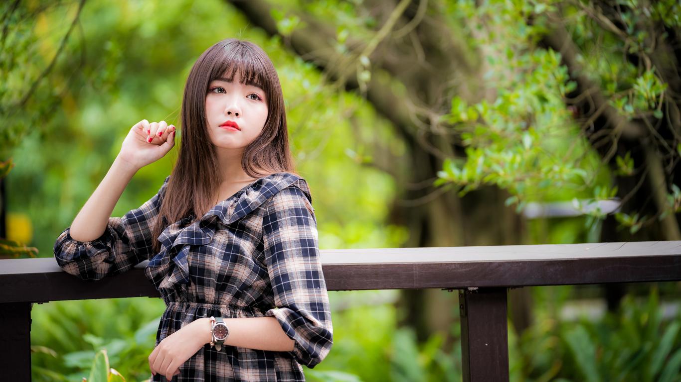 » Wallpaper Asian girl in a checkered dress