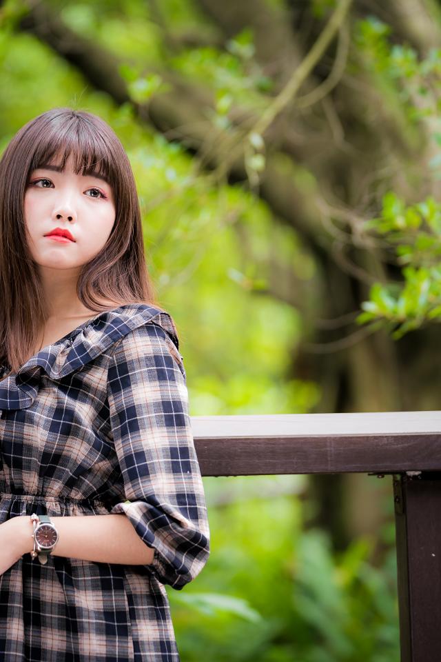 Wallpaper Asian girl with big brown eyes in a yellow dress