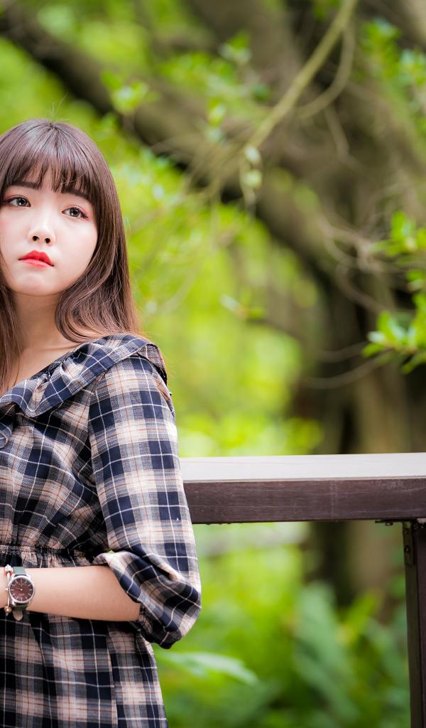 Wallpaper Asian girl with big brown eyes in a yellow dress