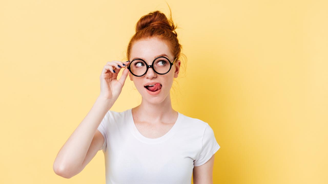 Wallpaper Beautiful girl with glasses on a yellow background