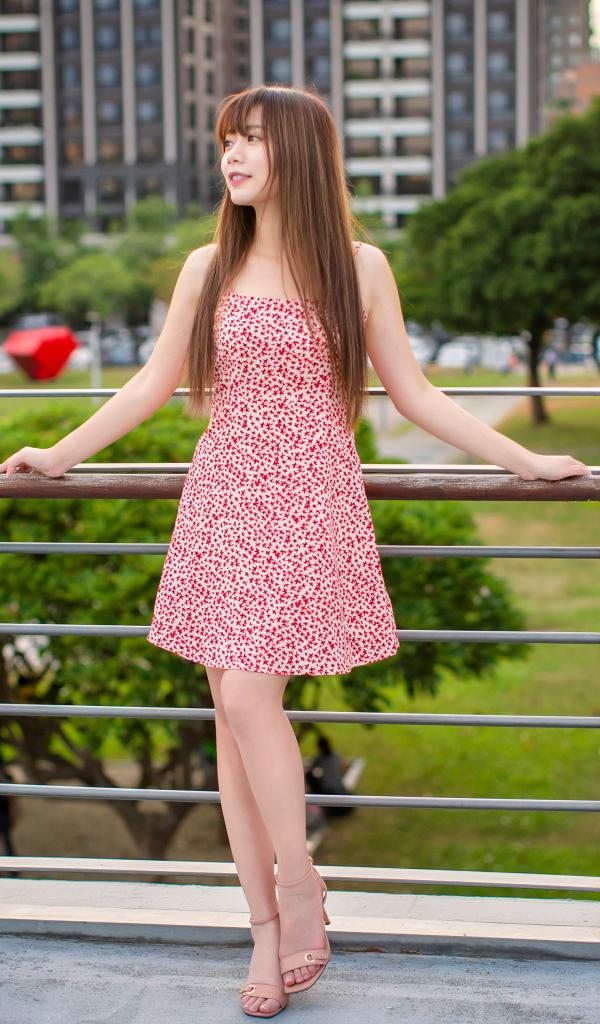 Wallpaper Cute Asian girl in a dress stands at the railing