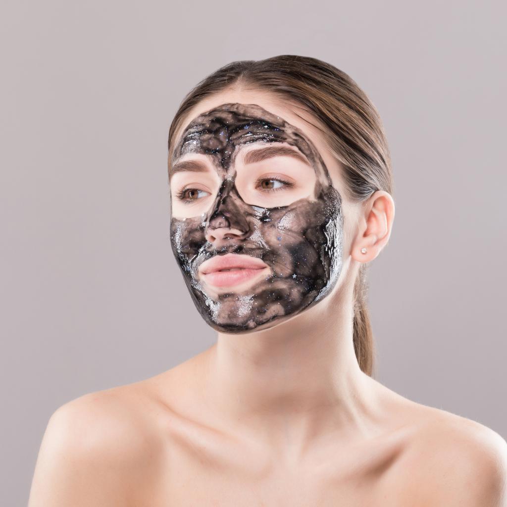 Wallpaper Young girl with cosmetic black mask on her face