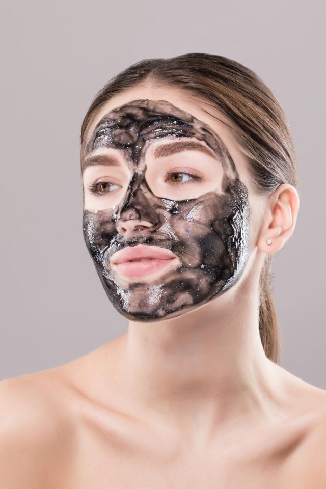 Wallpaper Young girl with cosmetic black mask on her face
