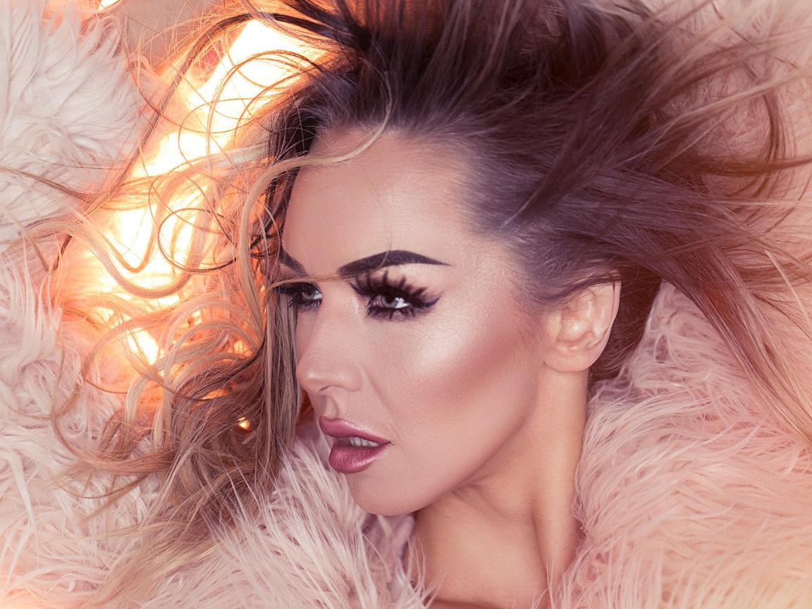 Wallpaper Girl with loose hair in a pink fur coat