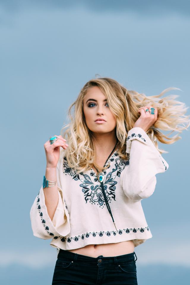 Wallpaper Girl in a beautiful shirt against the sky