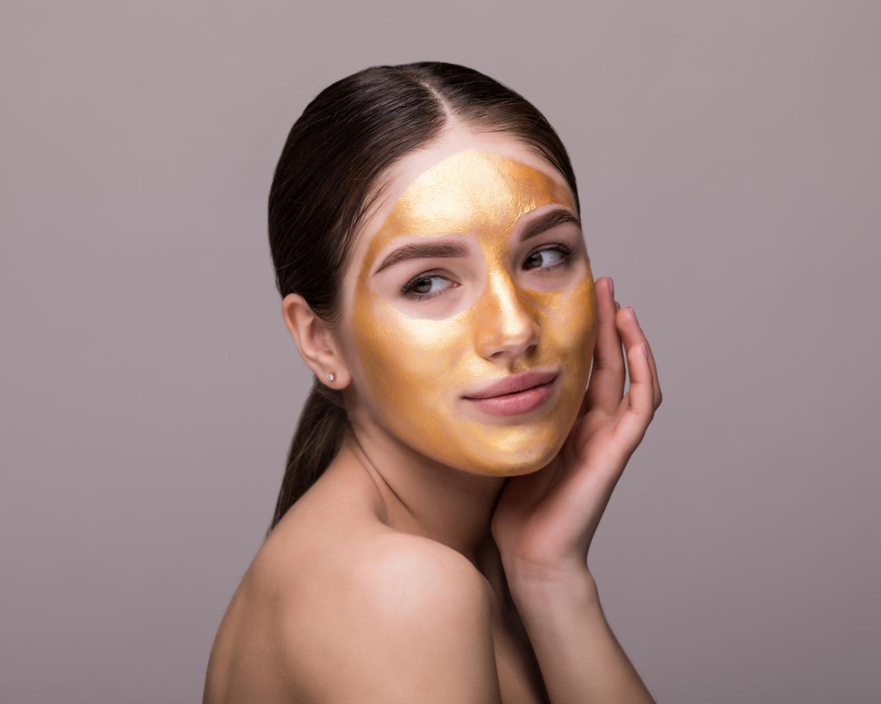 Wallpaper Golden mask on the face of a young girl