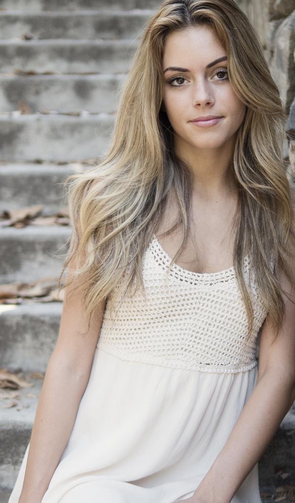 Wallpaper Beautiful girl in a white dress near a stone wall