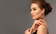 Wallpaper Beautiful girl with evening hairstyle on a gray background