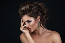Wallpaper Beautiful stylish blue-eyed girl with beautiful make-up and hairstyle