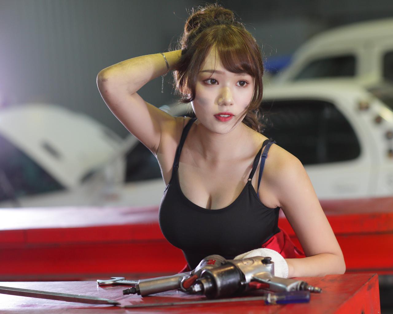» Wallpaper Asian girl car mechanic