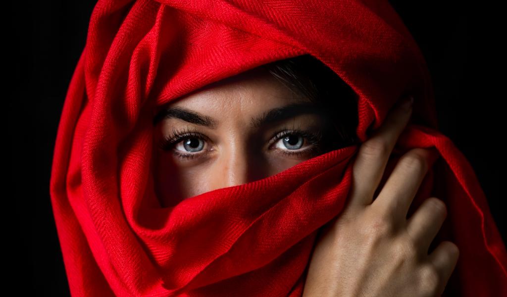 Wallpaper Beautiful blue-eyed girl in a red stole