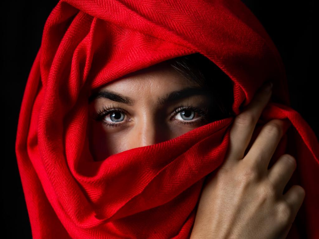 Wallpaper Beautiful blue-eyed girl in a red stole