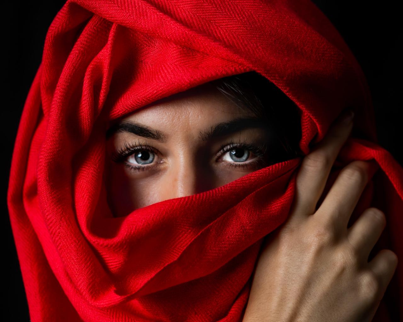 Wallpaper Beautiful blue-eyed girl in a red stole