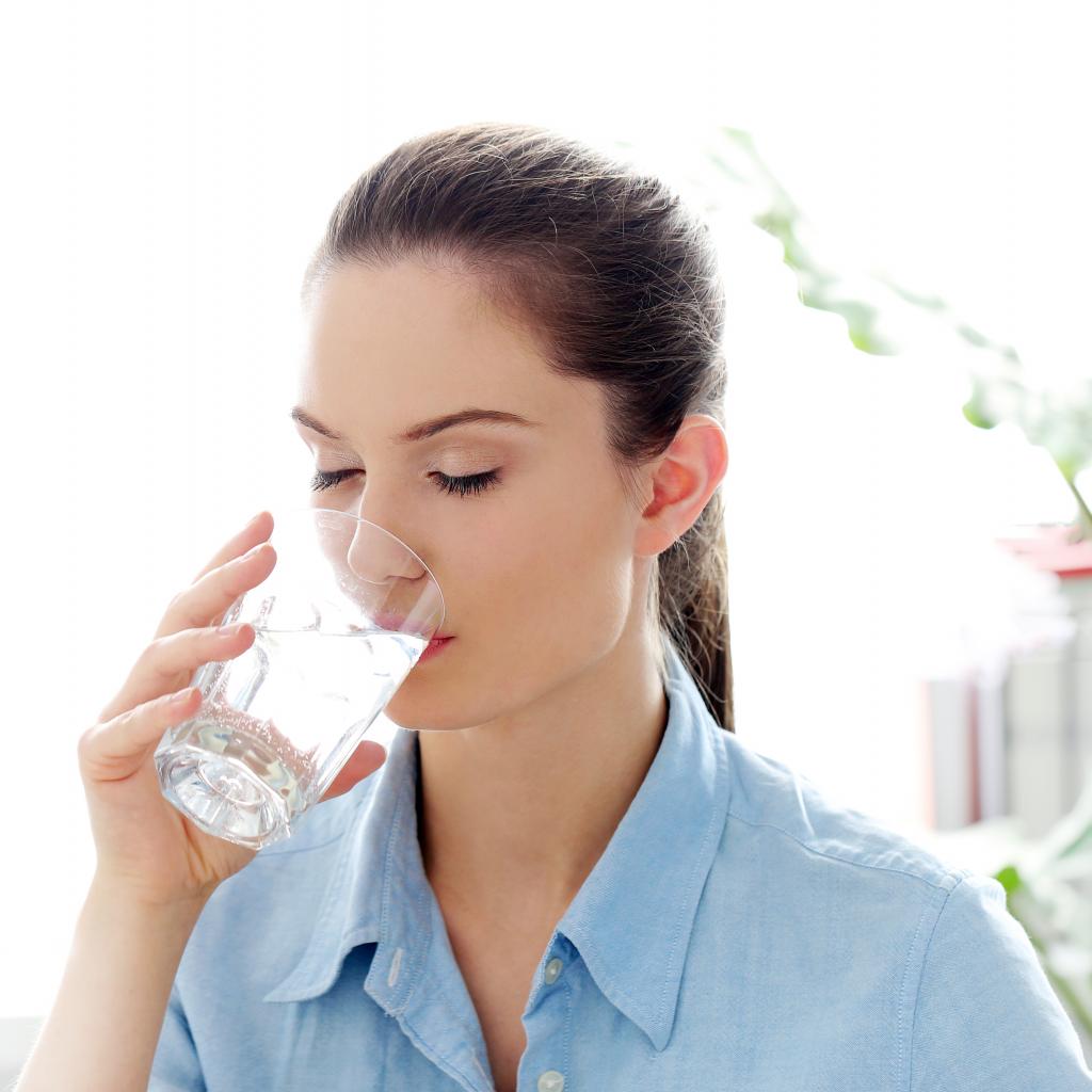 Wallpaper Beautiful girl drinks water in the morning