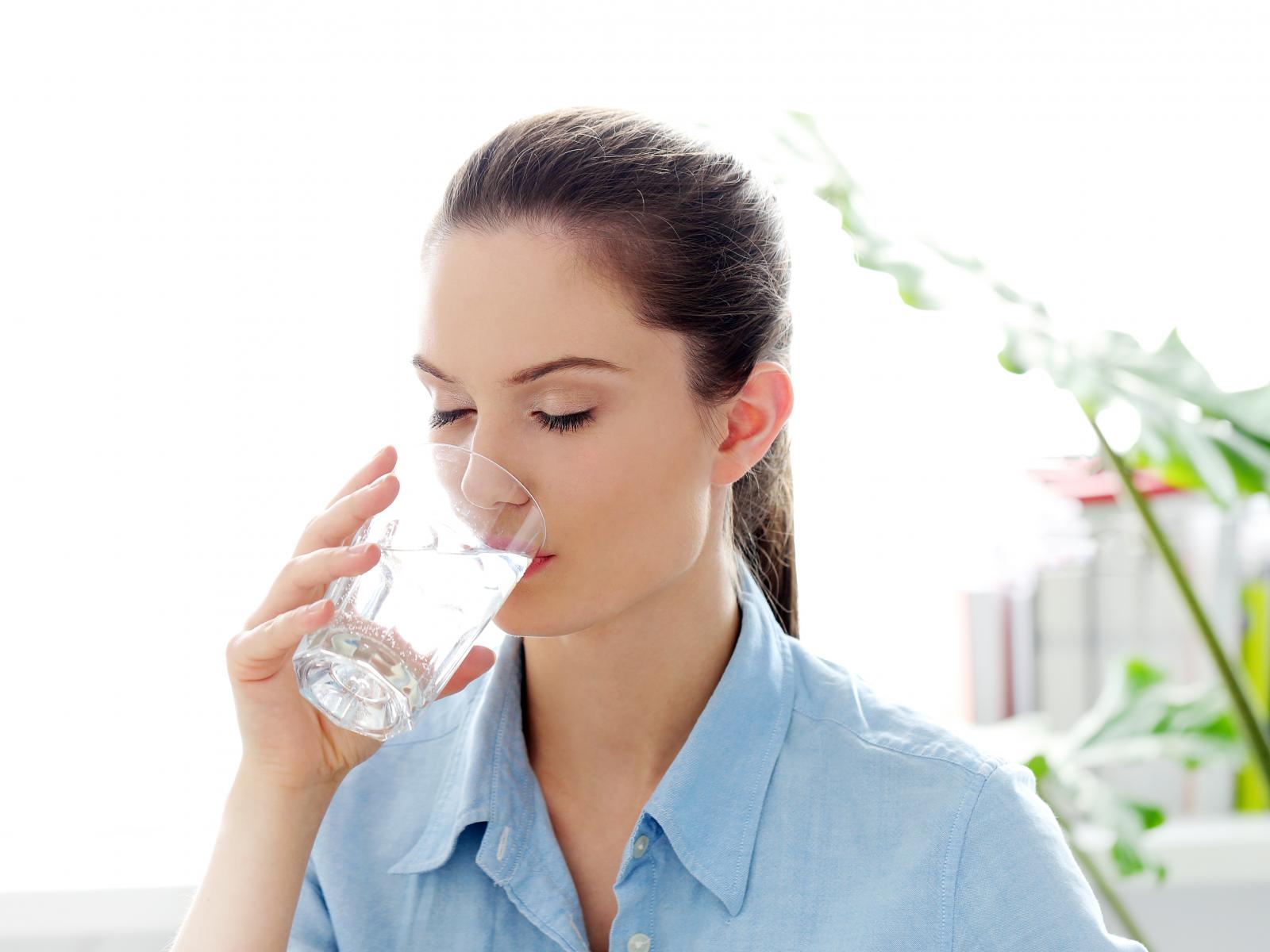 Wallpaper Beautiful girl drinks water in the morning