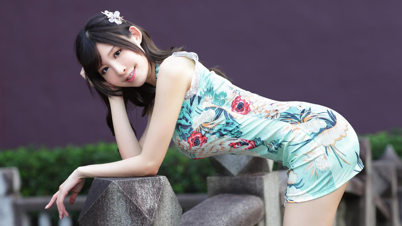 Wallpaper Beautiful smiling asian girl in short dress