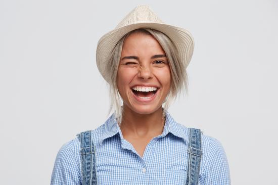 » Wallpaper Smiling girl farmer in hat