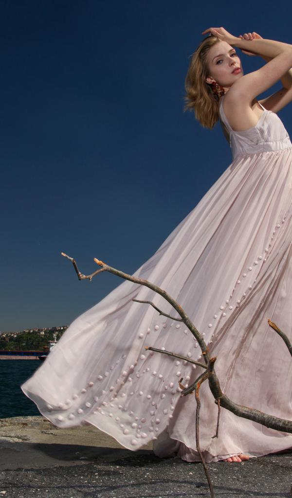 Wallpaper Beautiful girl in a white dress by the river