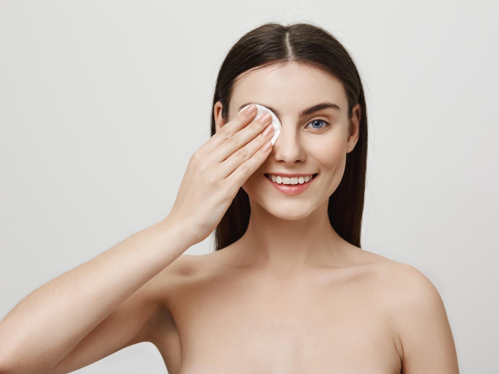 Wallpaper Real blue-eyed girl removes makeup from face