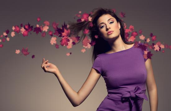 Wallpaper Beautiful girl in a purple dress on a gray background
