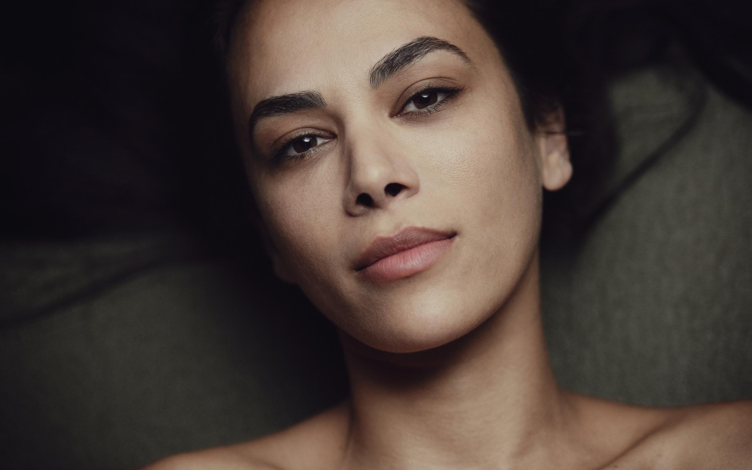 Wallpaper Beautiful brown-eyed girl lies on the sofa