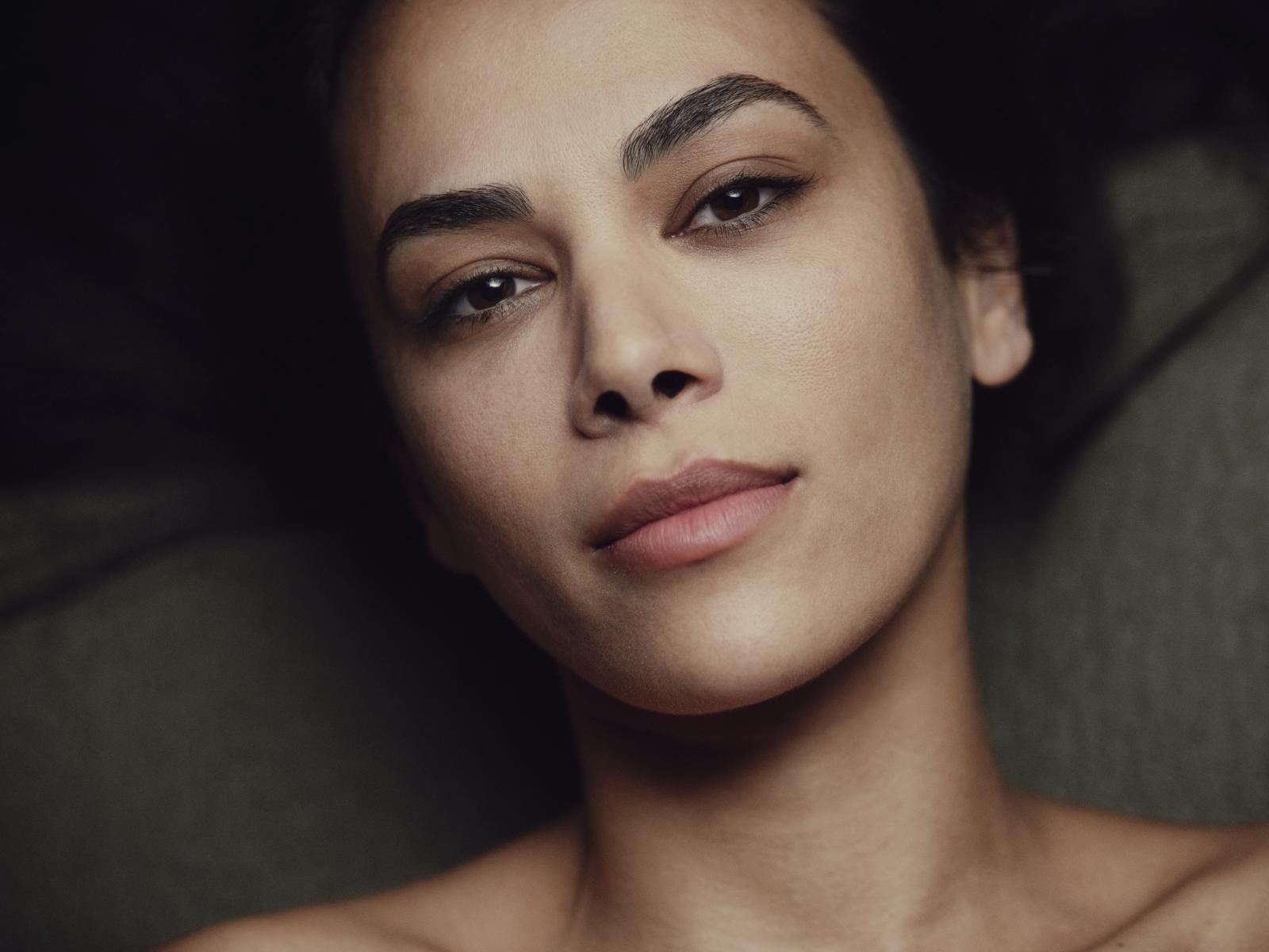 Wallpaper Beautiful brown-eyed girl lies on the sofa