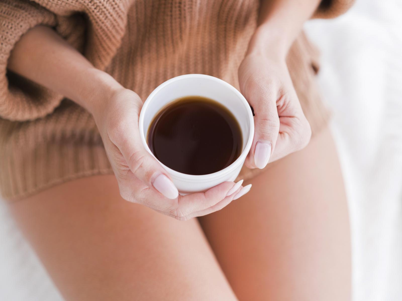 Wallpaper A cup of hot coffee in the hands of a girl