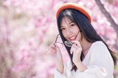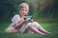 Wallpaper Beautiful red-haired girl in a black beret with a camera in her hands
