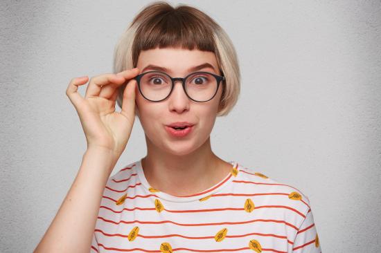 Wallpaper Girl with short hair straightens glasses