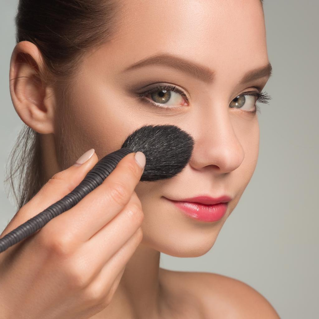Wallpaper Beautiful girl gets makeup on her face with a brush