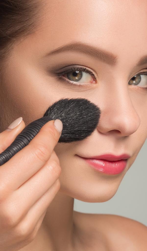 Wallpaper Beautiful girl gets makeup on her face with a brush